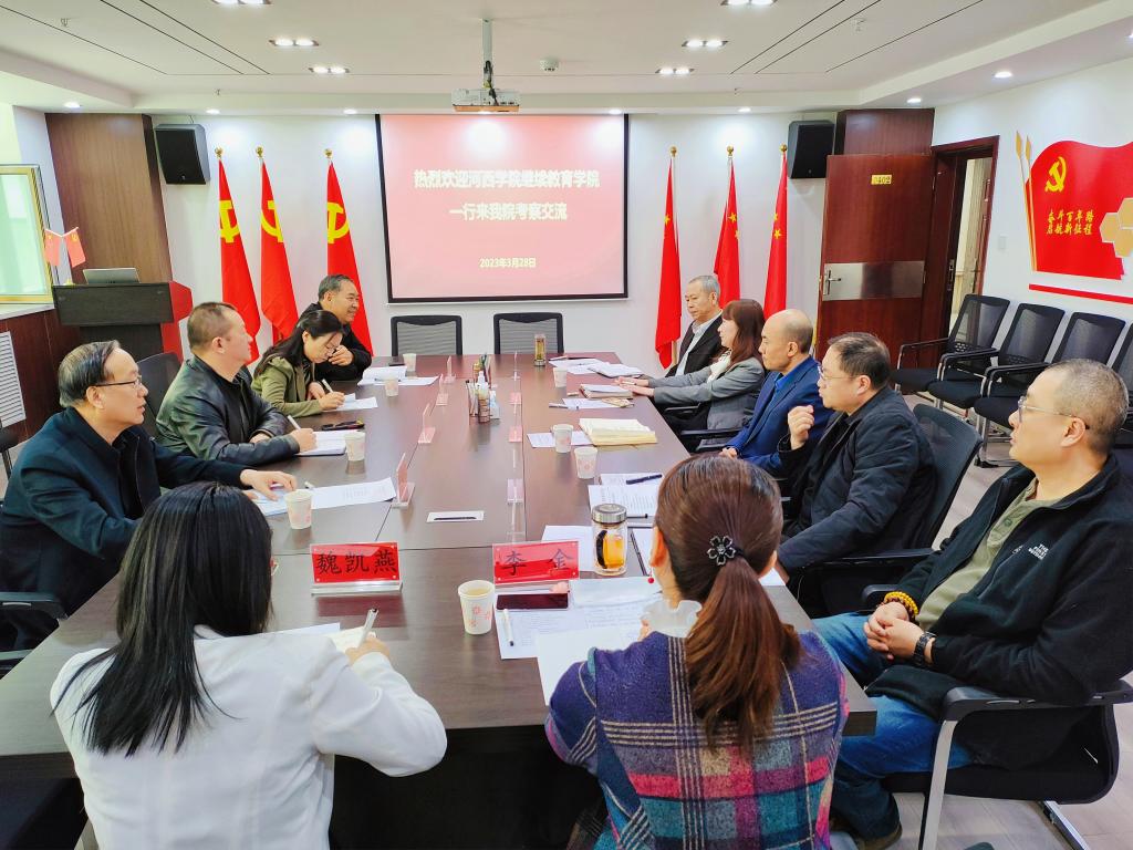 2023年3月28日上午,河西学院继续教育学院院长王晓虎、培训部主任及教学部负责人一行4人来我院考察交流。我院院长顾生杰、副院长樊怡、周勇、欧阳峻及相关科室人员参加了交流座谈。