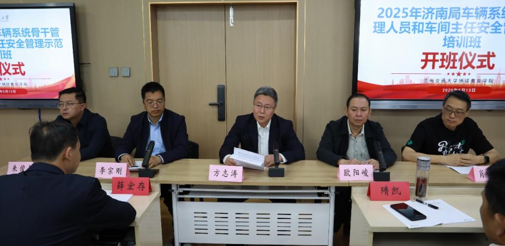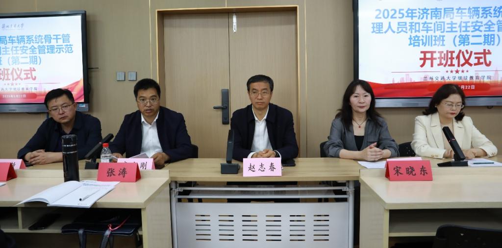 中国铁路济南局集团有限公司2025年度车辆系统骨干管理人员和车间主任安全管理示范培训班于5月13日和5月22日分两期顺利开班。中国铁路济南局集团有限公司车辆部主任赵志春、副主任方志涛,兰州交通大学机电工程学院院长李宗刚、副院长朱俊敏,继续教育学院相关负责人出席开班仪式。来自中国铁路济南局集团有限公司车辆系统的120名骨干管理人员参加开班仪式。